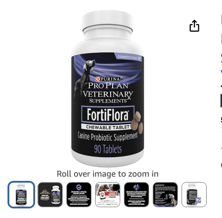 A popular product on Amazon is Purina Pro Plan Veterinary Supplements FortiFlora Dog Probiotic Supplement, Canine Nutritional Supplement which can be purchased here.